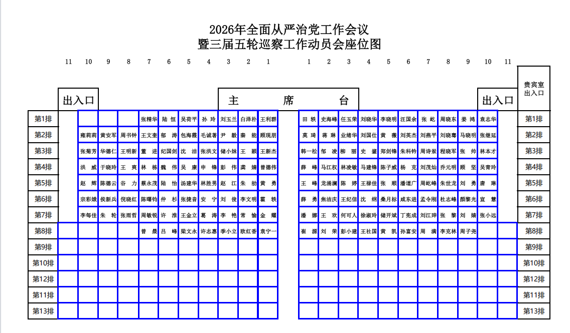 2026年全面从严治党工作会议暨三届五轮巡察工作动员会座位图
